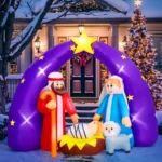 8FT FUN LITTLE TOYS Christmas Inflatable Nativity Scene with LED Lights, Outdoor Yard Decoration for Holiday.