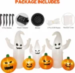 Perfect Halloween Yard Decoration: ​3 Halloween inflatable ghosts and 4 pumpkins are lined up in a row, each with a different expression, as if standing at the door or in the yard to welcome you and share the joy of Halloween with you!