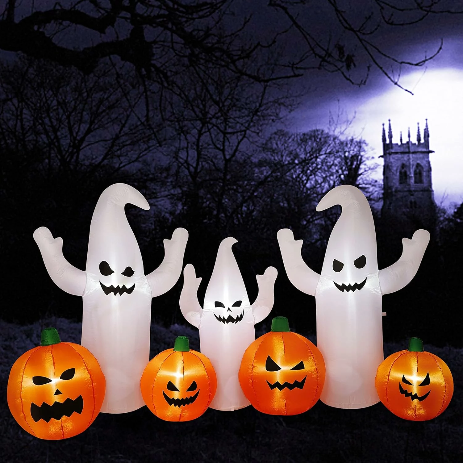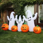 Inflatable Halloween Decorations: This LED lighted inflatable pumpkin and ghost is perfect for putting outdoors or indoors to dress up your Halloween Party