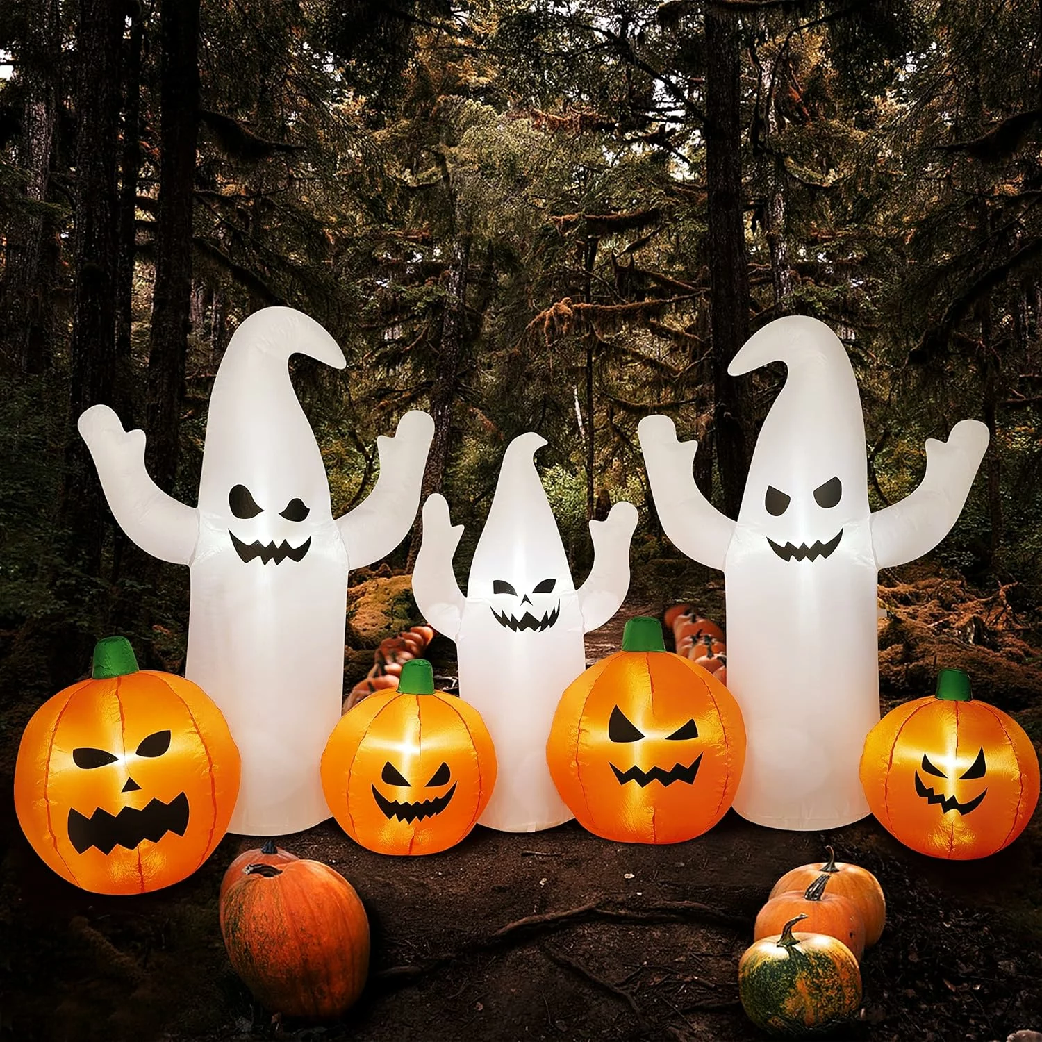 8 FT Long Lighted Halloween Inflatable Ghosts Waterproof with Pumpkins Blow Up Decorations Garden Lawn Party Yard