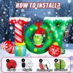 Playful JOY Christmas Design: This 8FT funny green Christmas inflatable features the word “JOY” with a cheerful green character at the center, surrounded by colorful gift boxes and shiny Christmas ornaments. It brings laughter, energy, and festive cheer to your outdoor Christmas decorations while adding a playful twist to your holiday display.