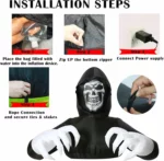 Durable Quality – Made of high-quality Polyester, weatherproof and fade resistant. Equipped with a powerful waterproof built-in fan, just plug into an outlet and a few seconds later, you’ll have a creepy inflatable grim reaper