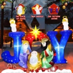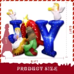 Outdoor Christmas Nativity Scene – This inflatable nativity scene featuring a depiction of nativity scene:the birth of Jesus, with Mary and Joseph welcoming their holy child. with the Star of Bethlehem, two angels, and a JOY decoration, it brings light and hope to your yard.