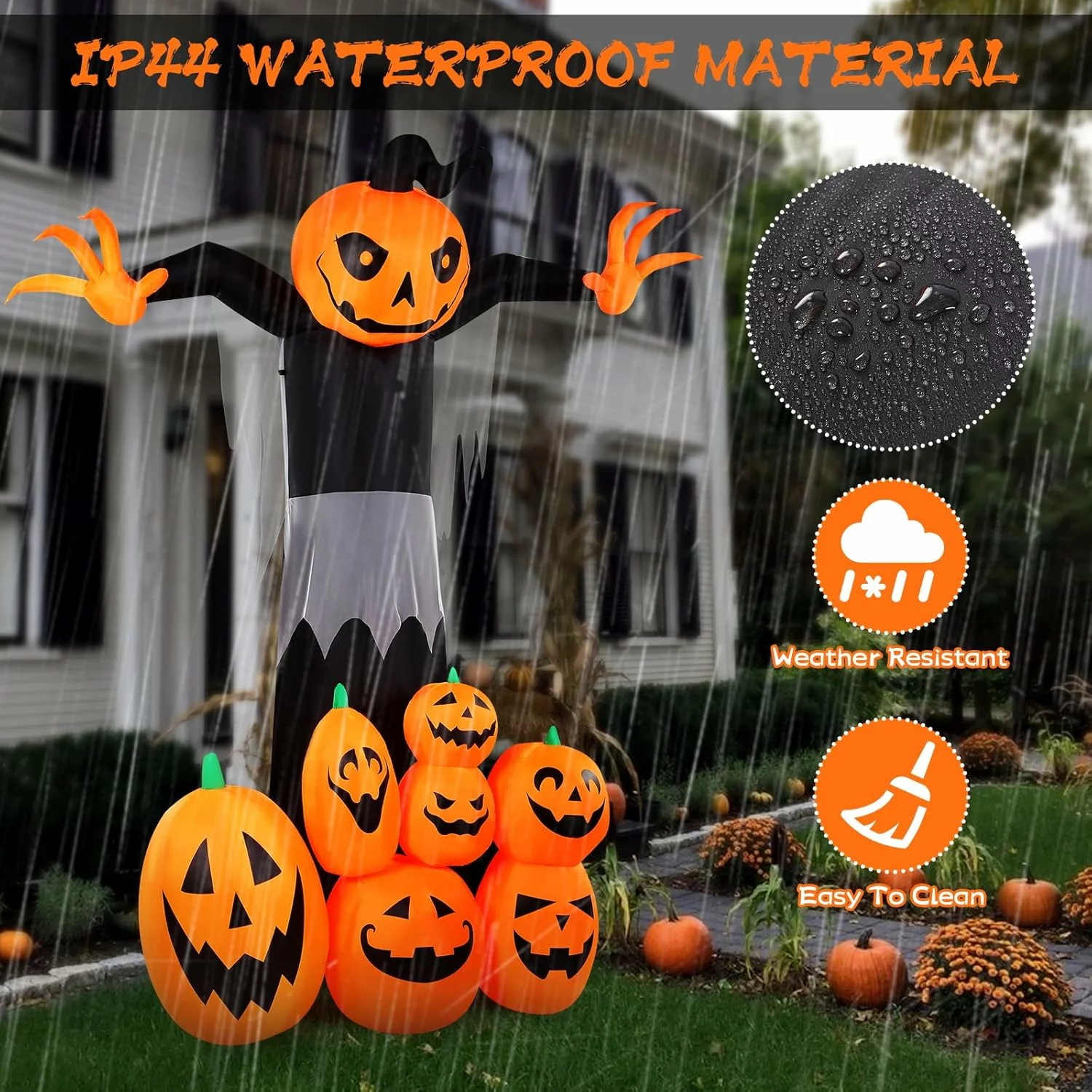 BUILT-IN EYE-CATCHING LED LIGHTS: The Reaper pumpkin inflatable has rotating LED lights in head, and Jack Pumpkin have bright eye-catching LEDs, casting a creepy glow to create a very festive and scary atmosphere, catching your eyes at the first glance