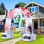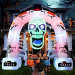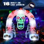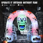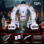 Halloween Inflatables: Introduce our 12 ft inflatable archway , a scary addition to decs. This halloween inflatable has 16 bright LEDs emitting eerie glow, powerful air blower for easy setup, is waterproof and tear-resistant, perfect for garden, yard, or party