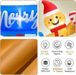 Durable Material – Crafted from thick 190T polyester fabric with reinforced stitching, this Christmas inflatable is waterproof, tear-resistant, and colorfast. It maintains great shape and vibrant color through multiple holiday seasons.