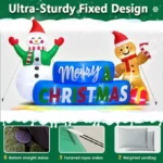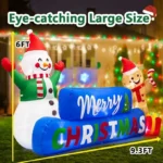 Eye-Catching Holiday Design – Light up your home this Christmas with this 6FT x 9.5FT inflatable display featuring a smiling snowman, a gingerbread man, and a bright blue “Merry Christmas” sign. Illuminated by built-in LED lights, it instantly becomes the centerpiece of your holiday yard décor.