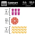 8 functions: AirFry, Grill, Bake, Broil, Convection Bake, Convection Broil, Toast and Warm