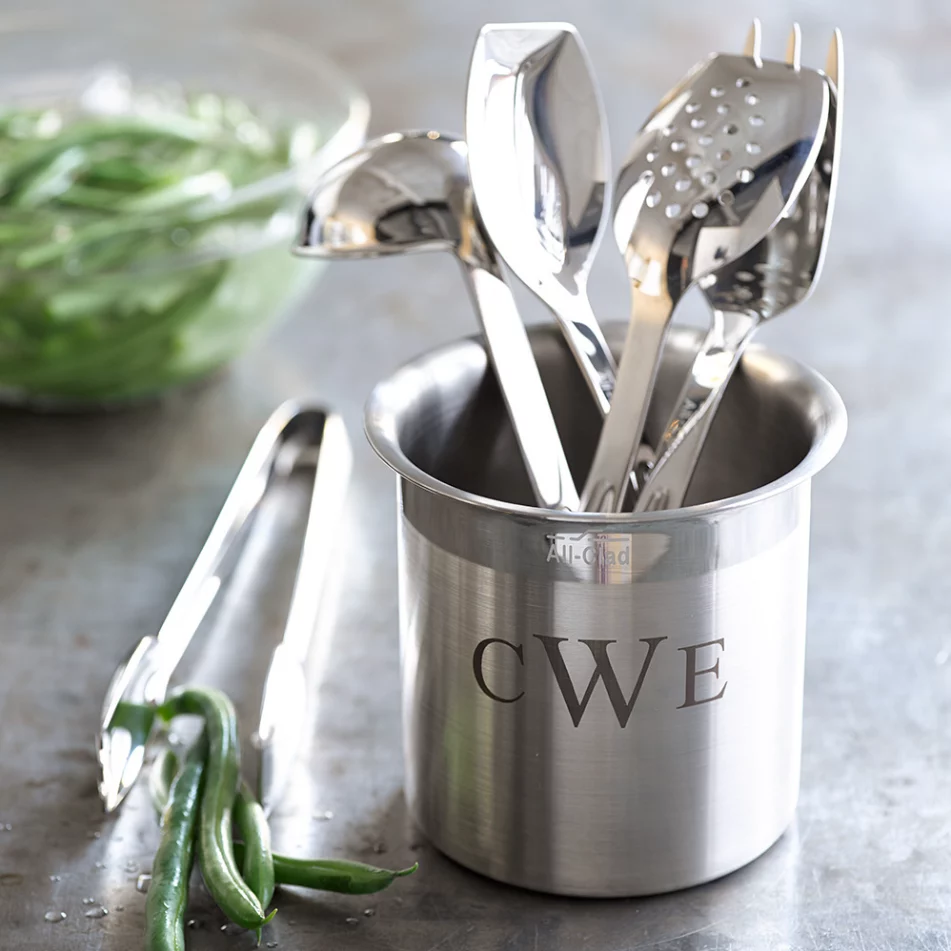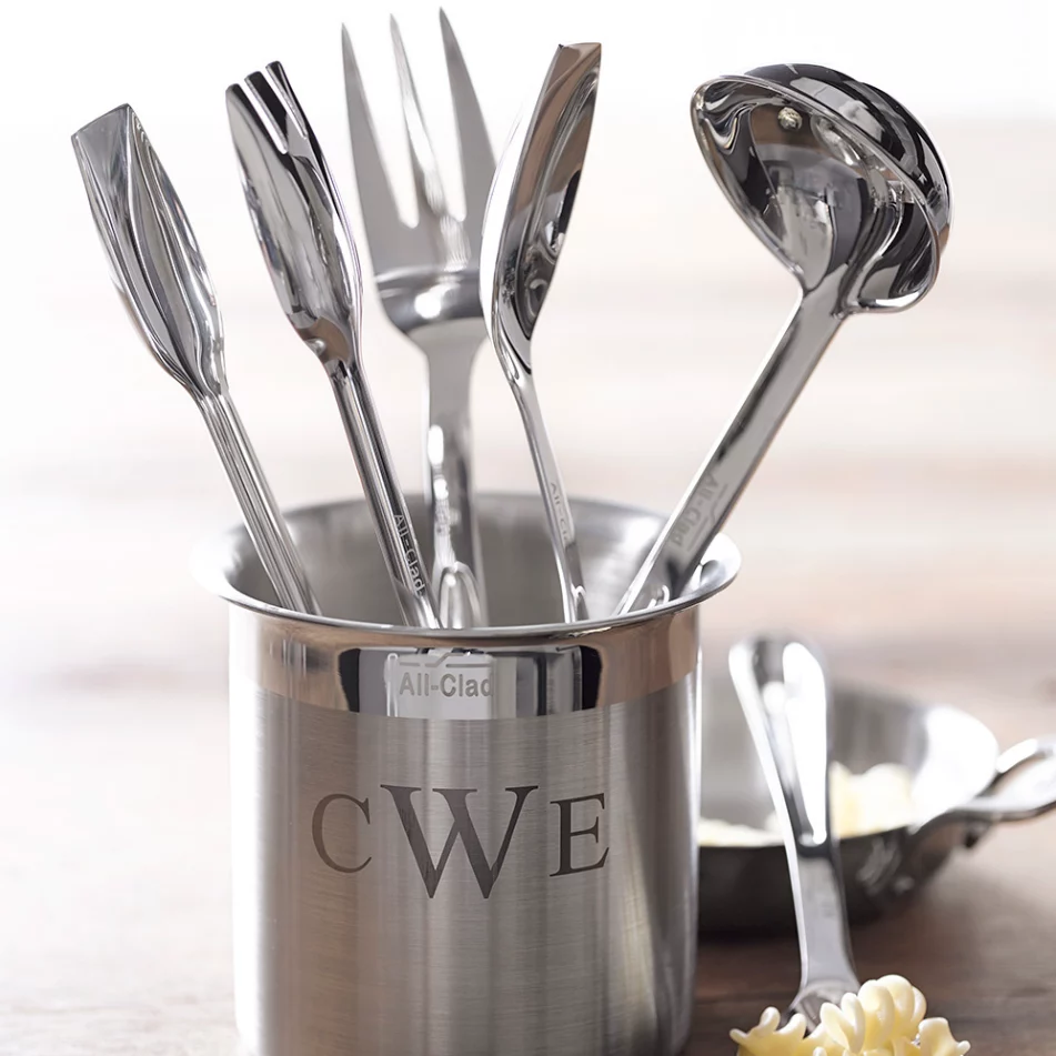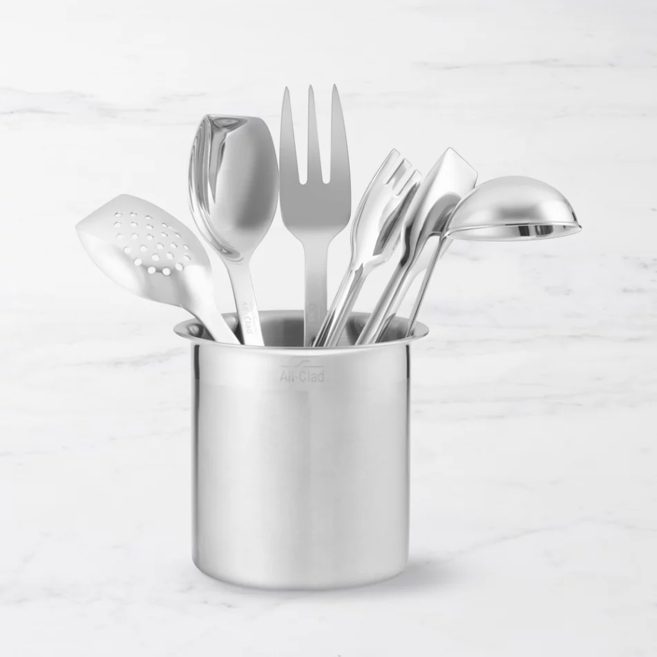 All-Clad Cook & Serve Stainless-Steel Utensils with Utensil Holder, Set of 6 – Premium 18/10 Stainless Kitchen Tools