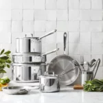 Premium Craftsmanship & Design Made from durable 18/10 stainless steel, each piece features a mirror-polished finish that’s exceptionally easy to clean and built to last a lifetime. Ergonomically shaped handles provide perfect balance, weight, and control, while laser-etched All-Clad logos and hanging loops add refined detail.