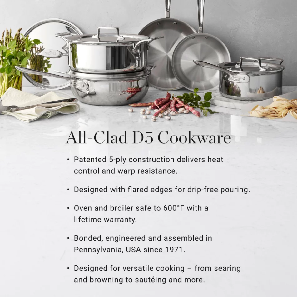 Experience the pinnacle of professional performance with the All-Clad D5® Stainless-Steel 12-Inch Fry Pan, engineered with innovative five-layer bonded construction for exceptional heat control and consistent results every time you cook.