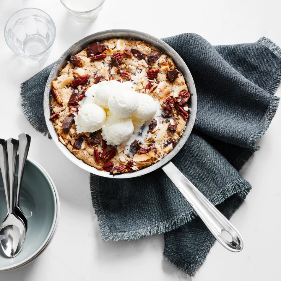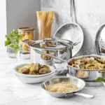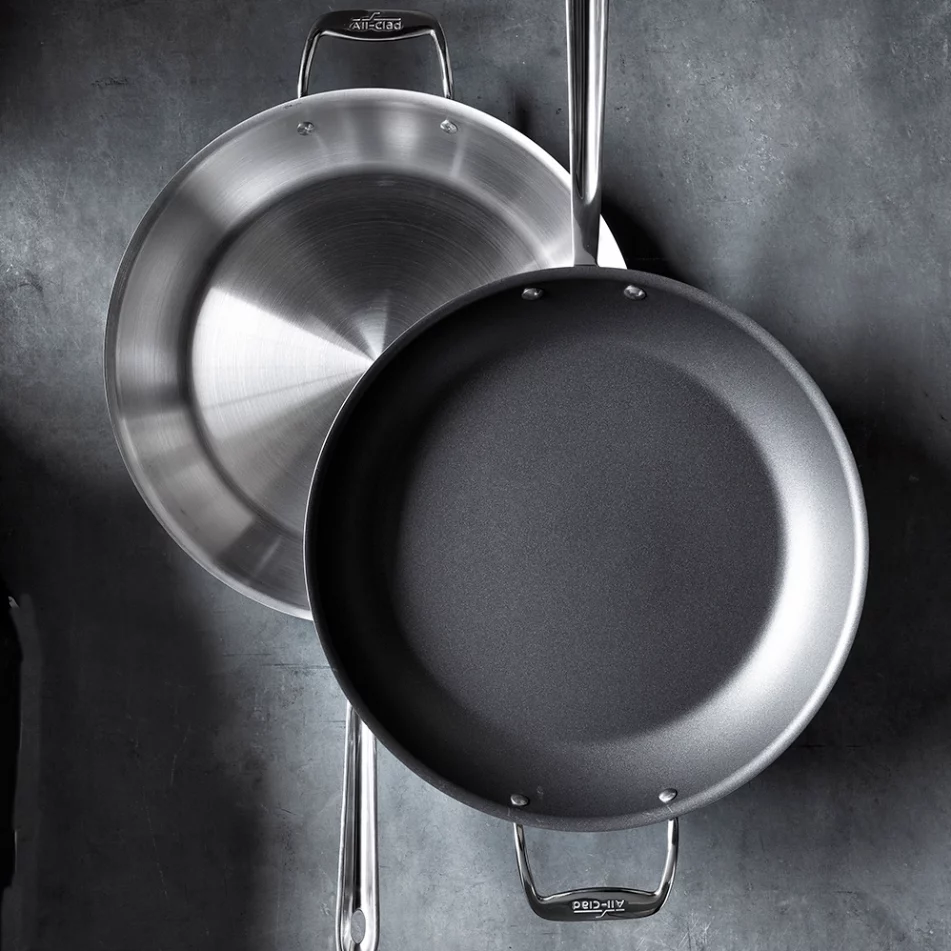 Advanced 5-Ply Technology Each alternating layer serves a distinct purpose: an 18/10 stainless-steel interior delivers foolproof browning and effortless cleanup, dual aluminum layers conduct and sustain heat, and a patented stainless-steel core diffuses heat evenly to eliminate hot spots. The magnetic stainless-steel exterior ensures lasting durability and induction compatibility.