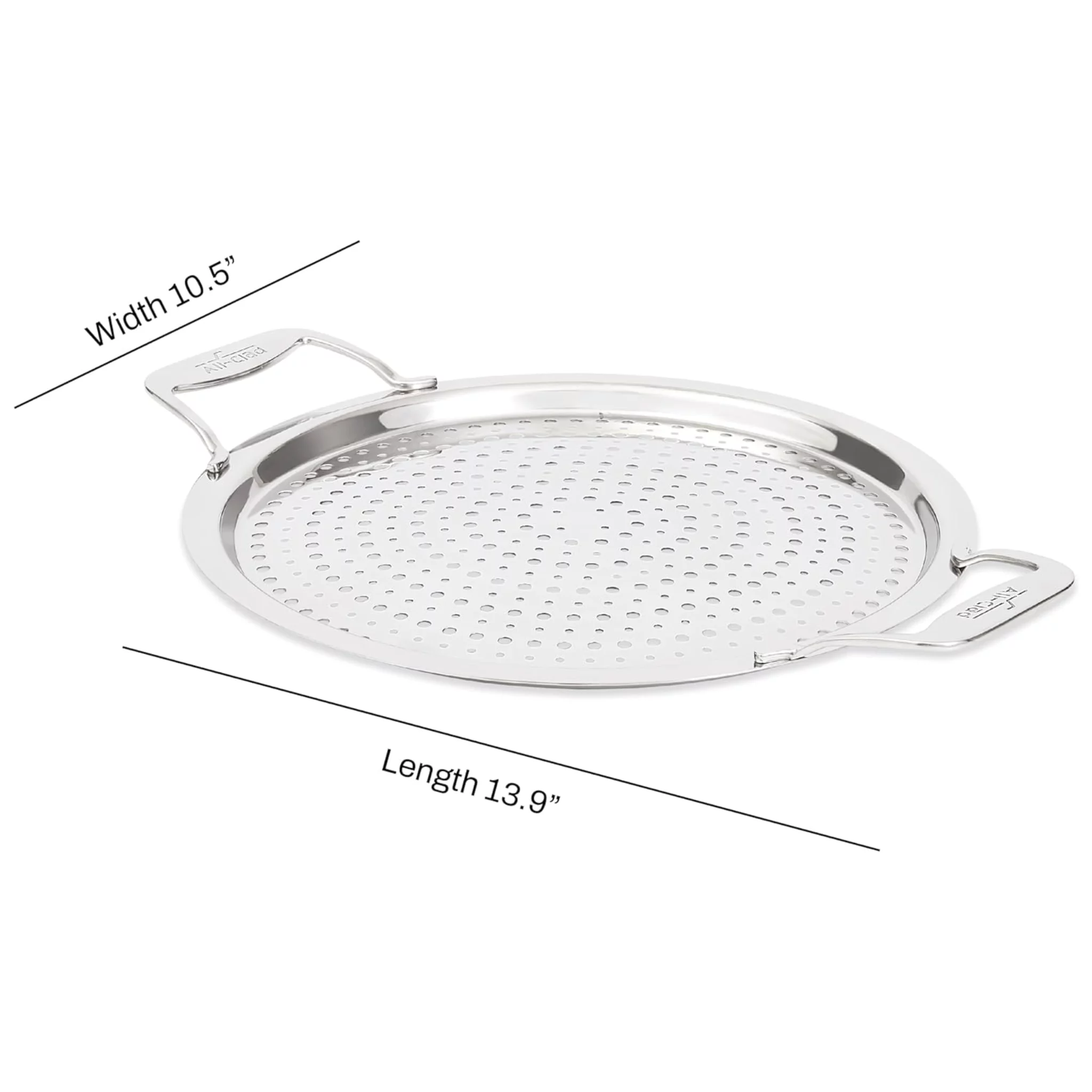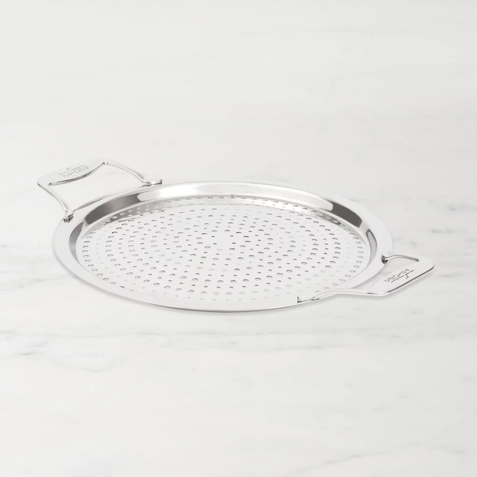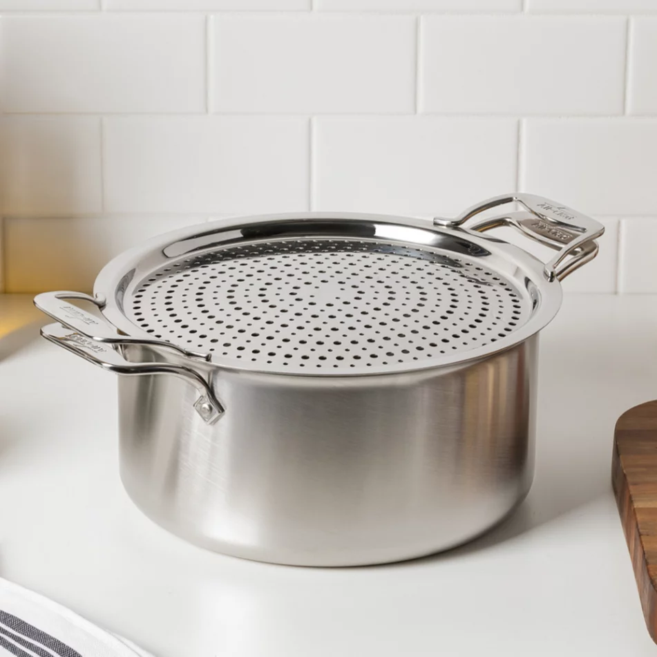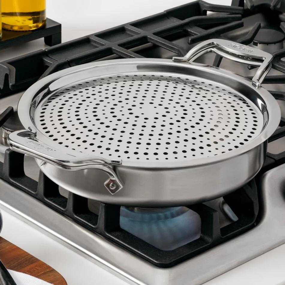 Innovative Dual-Purpose Design Engineered with All-Clad’s signature five-ply bonded construction, this heavy-duty stainless-steel guard delivers exceptional warp-free strength and lasting durability. The finely perforated surface effectively contains oil and sauce splatters while frying, sautéing, or searing, keeping your kitchen cleaner. Flip it over to securely hold food in the pan while effortlessly draining liquids—no more messy transfers or separate colanders needed.