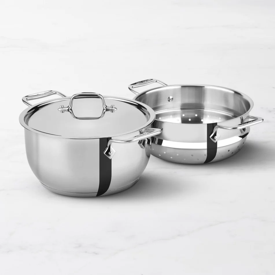 Bring healthy, flavorful steaming to your kitchen with the All-Clad Gourmet Accessories 5-Quart Steamer Set—a versatile duo that combines a polished stainless-steel pot with a perfectly fitted perforated insert for effortless meal preparation.