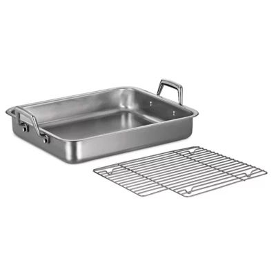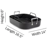 - Includes a V-shaped nonstick rack that elevates roasts for faster, more uniform cooking and crispier results