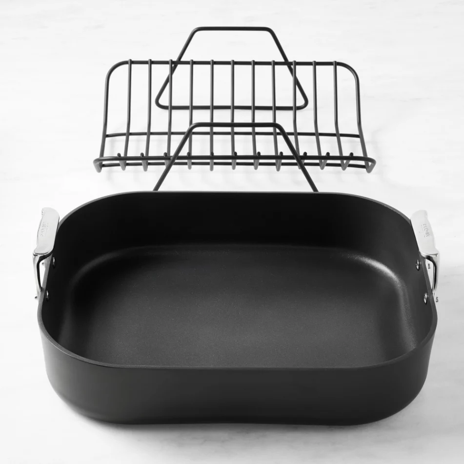 Achieve perfect holiday roasts and everyday oven meals with the All-Clad NS Pro™ Nonstick Roaster with Rack—a Williams Sonoma exclusive designed for superior performance, easy cleanup, and lasting durability.