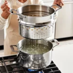 - Extra-wide cast stainless-steel handles on both pot and insert ensure a secure, comfortable grip