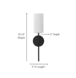 - Fixture dimensions: 4.75 in W x 19.13 in H x 5 in D; backplate measures 4.75 in W x 4.75 in H