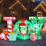 𝐂𝐨𝐦𝐦𝐞𝐫𝐜𝐢𝐚𝐥-𝐆𝐫𝐚𝐝𝐞 𝐃𝐮𝐫𝐚𝐛𝐢𝐥𝐢𝐭𝐲: The 8 foot christmas inflatable outside is made of durable Polyester with UV/waterproof coating(non-toxic material), withstands snow/rain while maintaining vibrant colors season after season.