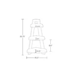 Assembled size: 11in. D x 15.5in. W x 25.75in. H. Open shelf 1: 6.5 in. L x 9.13 in. W x 6.25 in. D Open shelf 2: 8.44 in. L x 8.44 in. L x 1.88 in. W x 8.63 in. D Open shelf 3: 10.44 in. L x 14.63 in. W x 8.63 in. D