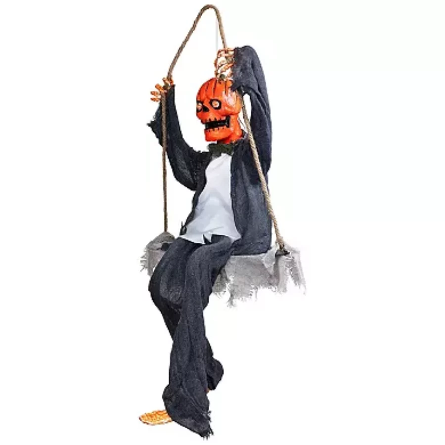 - Animated pumpkin man on a swing adds spooky, playful movement to your Halloween display.