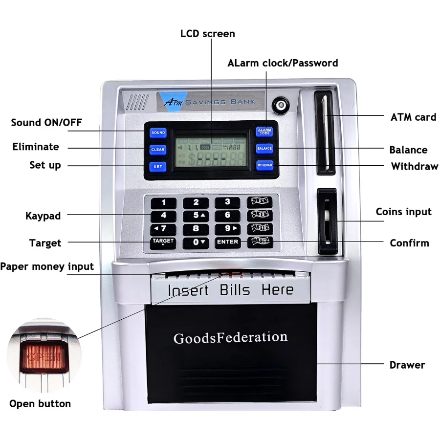 ATM Money Bank Toy With Card Password Electronic Piggy Bank For Real Money Safe Coin Box For Boys Girls Adults.