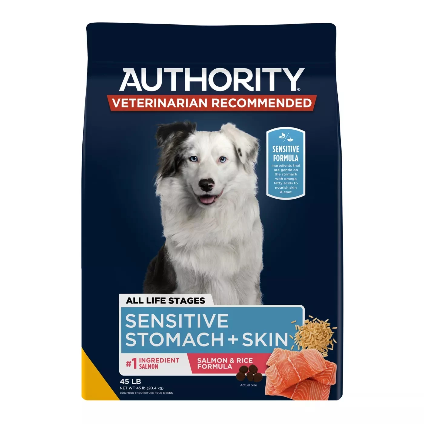 Authority Sensitive Stomach & Skin All Life Stages Dry Dog Food Salmon & Rice 45 lb Bag