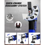 Universal Interfaces and Quick Change Accessory System: This oscillating multitool features universal fit system, allowing to accept most brands of blades. Blades included are also compatible with most brands of oscillating tools. No wrench needed, 3 tool-free steps to changes blades easily