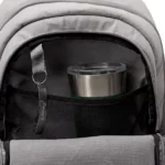 - Large front zippered pocket keeps contents—such as a phone, keys, and wallet—safe and dry; side pockets large enough to fit a water bottle; front bungee for carrying a jacket or towel