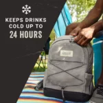 Take your outside adventures to whole new level with the Coleman® Backroads™ 30-Can Soft Cooler Backpack designed to offer a unique look and feel plus the premium Coleman features you just have to have. Made of sturdy waxed canvas that repels dirt and water this cooler is perfect for picnics, tailgates, or festivals. Food and drinks stay cold for up to 24 hours while you toss the frisbee or dig into an extra helping of wings. Padded adjustable shoulder straps, breathable mesh back, plus sternum and waist straps make the cooler comfortable to carry as you weave your way through a crowded festival. Keep your phone, wallet, or keys safe and dry by storing them inside the large front zippered pocket and use the bungee cord to stash a jacket or towel. Side pockets fit a water bottle or sunscreen for convenience. When you’re ready to get the fun started, pop open a cold one using the bottle opener attached inside the front pocket. An antimicrobial leakproof liner helps prevent odor, mildew, and mold so you feel confident making this a go-to cooler backpack for years.