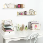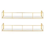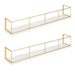 Benbrook 24-Inch Floating Wall Shelves – 2-Pack Wood & Metal, White and Gold Finish