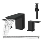 BESy Matte Black Widespread Bathroom Faucet, 8 Inch 3-Hole Vanity Faucet with 2 Handles, Waterfall Spout, Stainless Steel Sink Faucet with cUPC Hoses and Pop-Up Drain Assembly