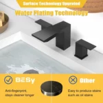 Modern, Functional Design: Featuring a clean matte black finish, this widespread bathroom faucet instantly elevates the look of your bathroom. Easy-to-read blue and red markers on the handles make temperature control clear and convenient, combining style with practicality.