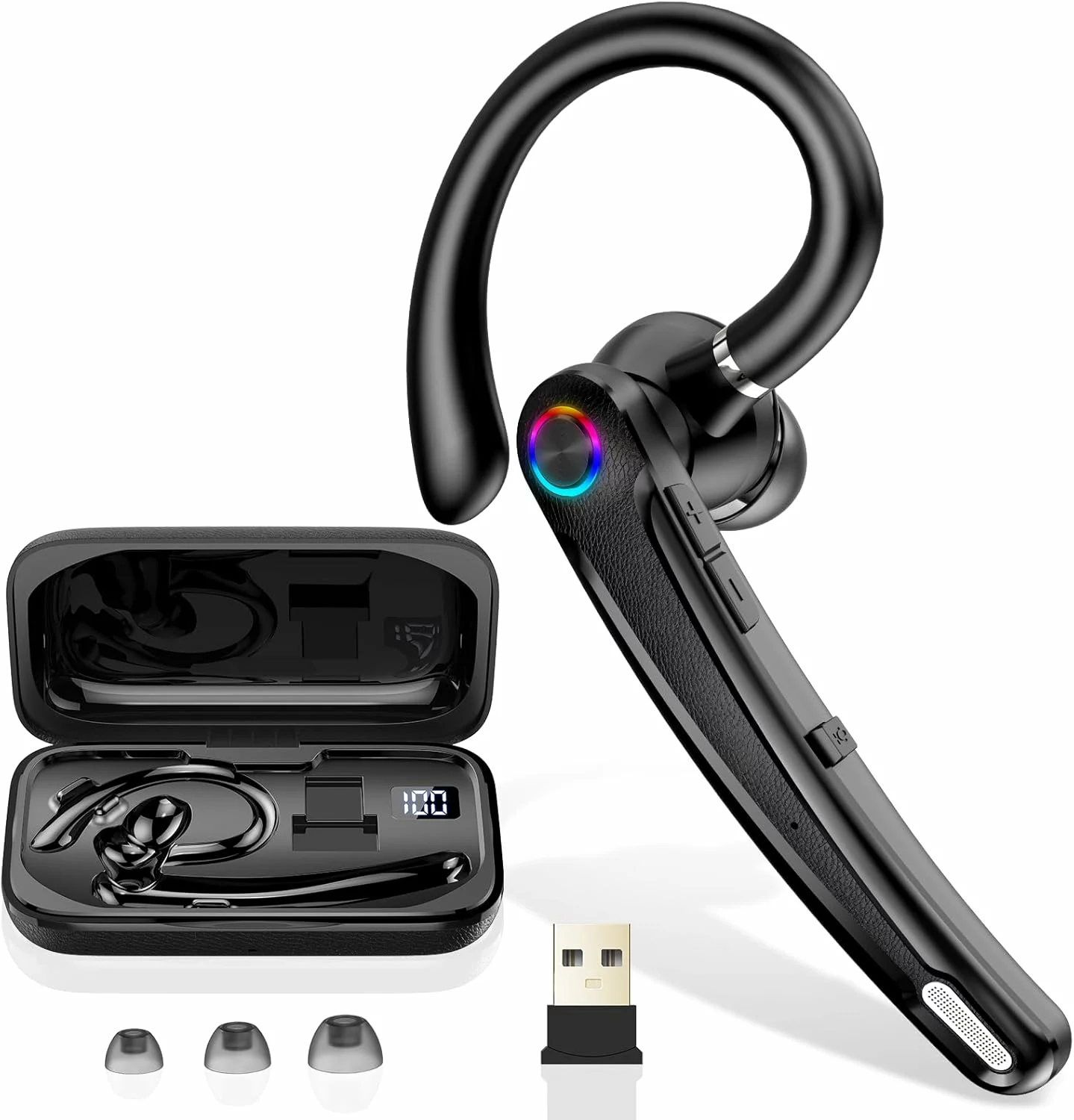 LED Display & Rapid Charging: Track power at a glance with the charging case’s LED screen. The bluetooth earpiece charging case delivers 115H total playtime (playback time may vary based on volume settings). 1.5H rapid charging ideal for multi-taskers, whether for business, travel, home, remote work, driving or long trips.
