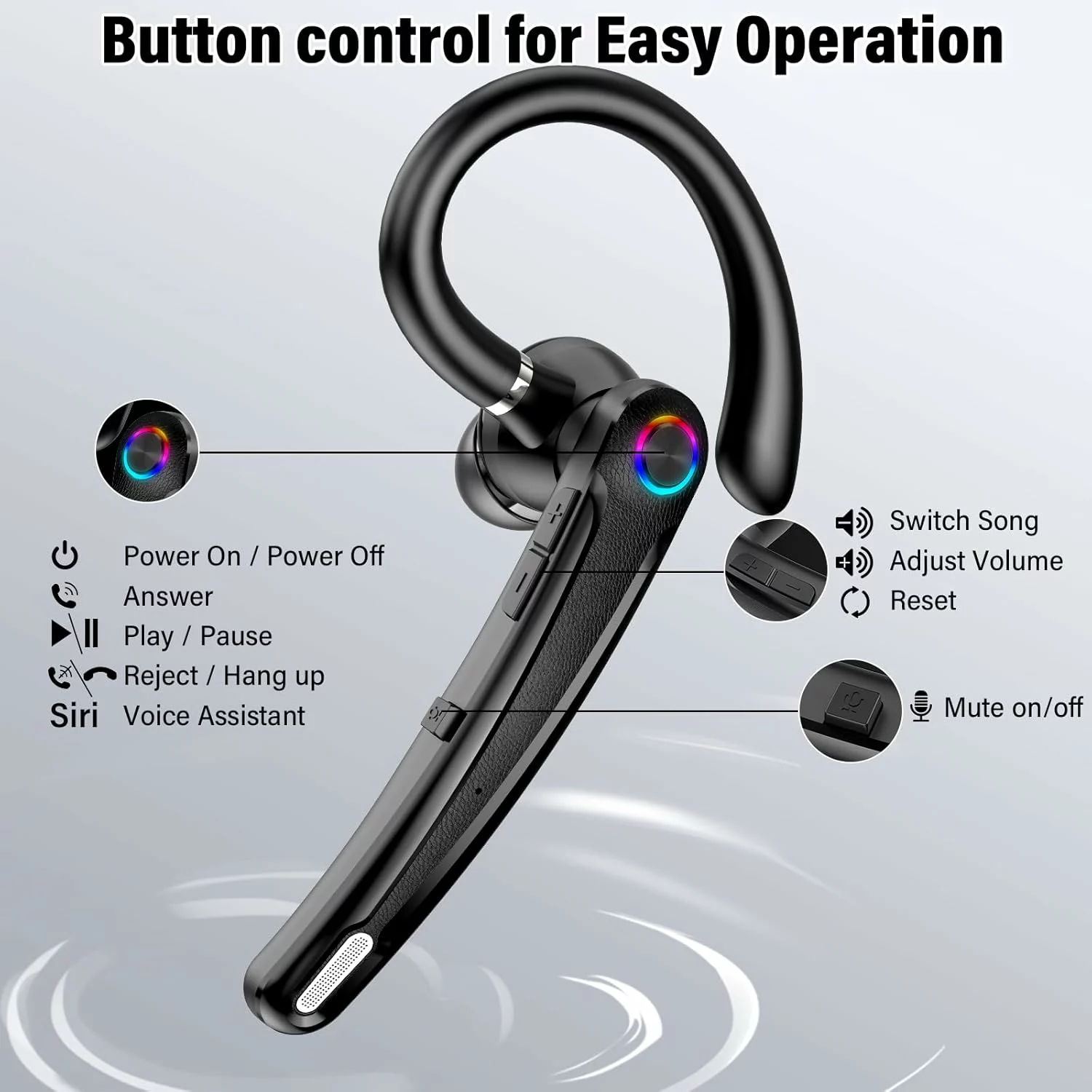 Bluetooth Headset V5.4 Wireless Earpiece with Dual Mic Noise Cancelling, 115H Playtime Hands-Free Headphone for Trucker Work