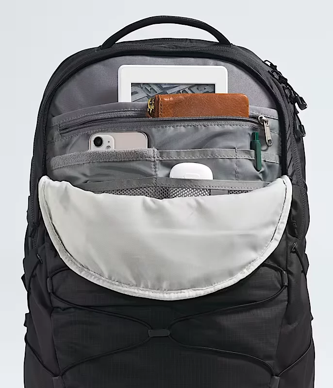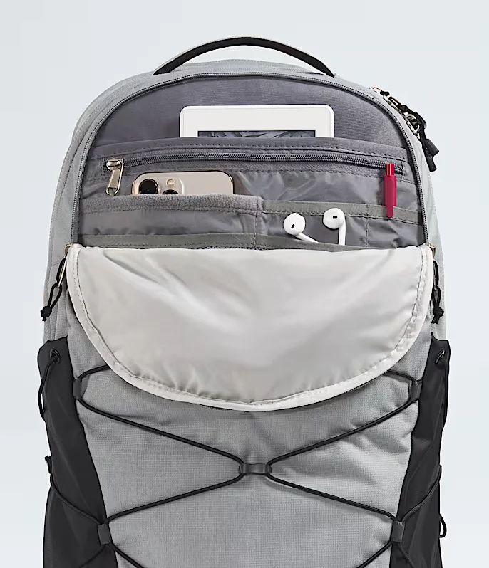 Ideal for both outdoor adventures and daily commutes, this North Face Borealis backpack offers ample storage with a large main compartment and a dedicated, highly protective laptop sleeve. Comfort is a priority with its FlexVent™ suspension system, articulated shoulder straps, and padded top handle, ensuring ease of carry all day long. Stay organized and prepared with multiple pockets, including two external water bottle pockets, a front compartment with secure-zip pockets, and an external fleece-lined pocket for your essentials.