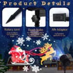 360 Degree Festive Charm: this Christmas landscape decorative lighting has dynamic patterns; With the ability to rotate 65 degrees, it casts its enchanting light in assorted direction, splashing your surroundings with dynamic, moving patterns.