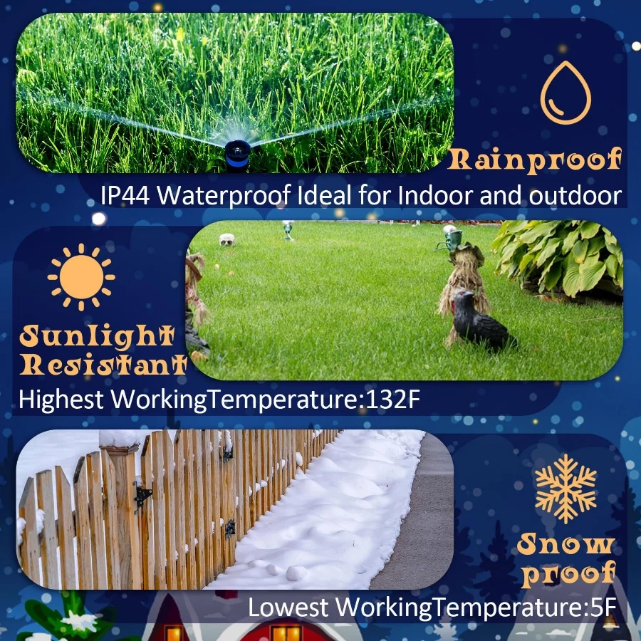 Reliable Material: crafted from quality waterproof PC lens and ABS body, this Christmas projector light is sturdy and solid, the maximum operating temperature is about 132 Fahrenheit degree, minimum operating temperature is about 5 Fahrenheit degree.