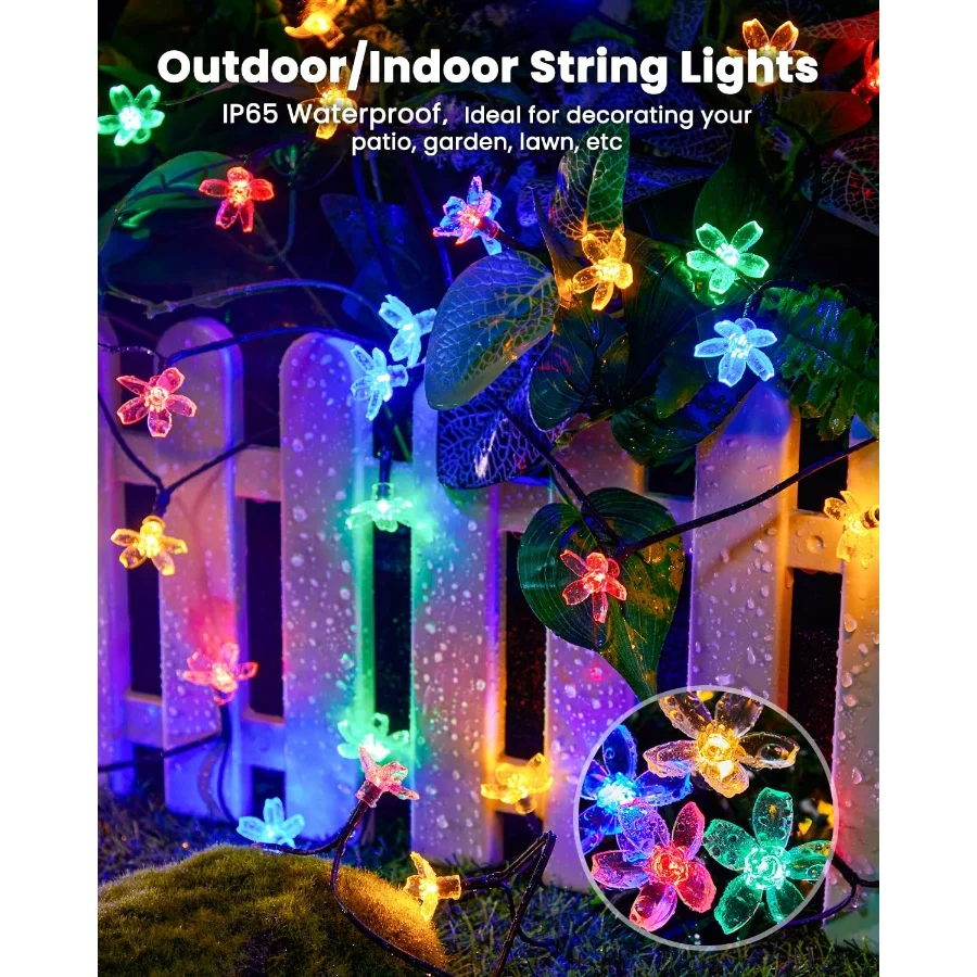 Brightown Solar Flower String Lights 60 LED Waterproof Fairy Lights Outdoor for Garden, Patio, Fence, Tree, Wedding, Holiday, Party Decor.