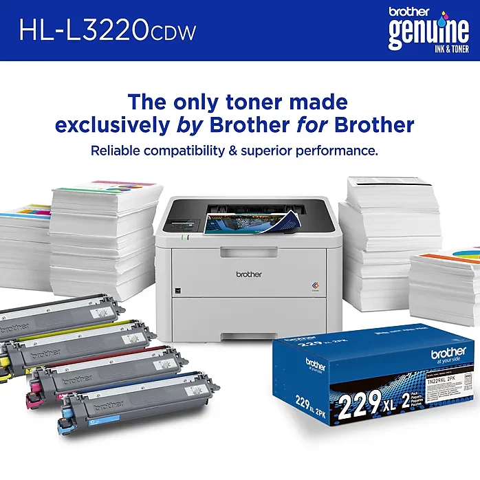 - Affordable per-page costs with Brother Genuine TN229 (standard) or TN229XL (high-yield) toner—plus optional Refresh EZ Print Subscription for up to 50% savings and automatic delivery