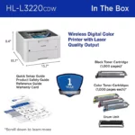 Upgrade your home office printing with the Brother HL-L3220CDW Wireless Color Laser Printer—a compact, reliable single-function laser printer designed to deliver professional-quality color and black-and-white documents affordably and efficiently. Perfect for busy professionals, students, or families who need consistent, high-impact output without the hassle of inkjet maintenance.