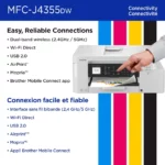 Backed by Brother’s trusted reliability and support, the MFC-J4355DW combines high-quality inkjet output, generous ink supply, wireless flexibility, and advanced productivity tools to keep your workspace running smoothly. Whether printing reports, invoices, photos, or everyday documents, enjoy crisp, vibrant results without the hassle of frequent cartridge changes. Upgrade your home office or small business with this capable Brother all-in-one today.