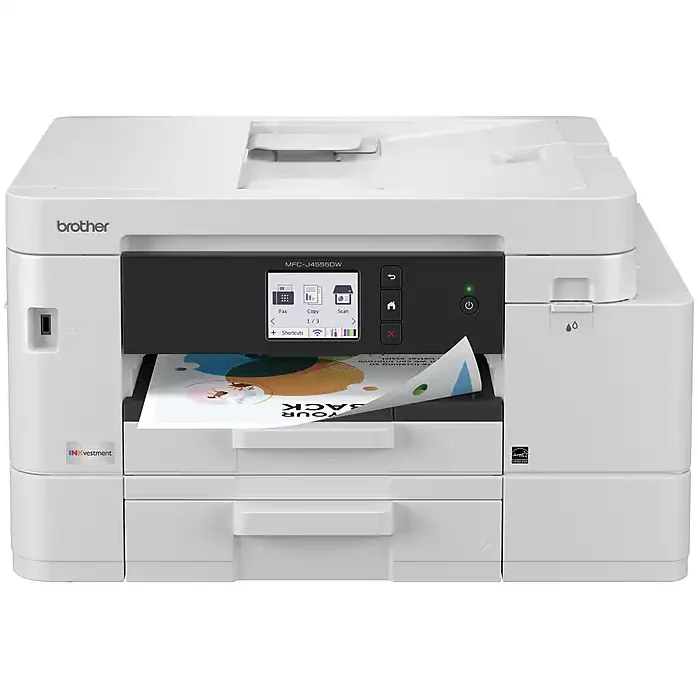 Streamline your small office or home business printing with the Brother INKvestment MFC-J4555DW Wireless Color All-In-One Inkjet Printer—a powerful multifunction machine that delivers fast, high-quality prints, copies, scans, and faxes while maximizing ink value and minimizing interruptions. Designed for productivity, this compact all-in-one combines generous paper handling, advanced connectivity, and long-lasting ink to keep your workflow efficient and professional.
