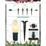 Driveway Christmas Lights: Christmas decorations walkway lights outdoor with 25 C9 clear bulbs, E17/C9 intermediate socket base.The C9 bulbs are UL Listed and consume only 7W of power. Even if one bulb goes out, it won’t affect the others, providing a reliable and long-lasting lighting solution