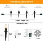 C9 Pathway String Lights: 20 Packs Christmas Pathway Lights Outdoor Total Length about 24.2 Feet; Lighted Length about 19ft; 12 Inch Spacing, 20 Stakes 6.3 Inch High and a Single Light (with Stake) about 8.3 Inch High
