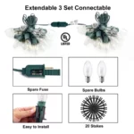 Warm White Bulbs:This C9 Christmas Path Light Bulb is Detachable And Easy To Install Or Replace. Each Bulb Is 7 Watts, 120v. Suitable For E17 Base. This Walkway Lights With 20 Stakes Comes With A Spare Bulb X2 And A Spare Fuse In The Male Plug