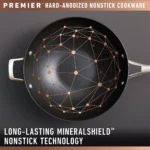 Featuring MineralShield nonstick technology, Calphalon Premier Hard-Anodized Nonstick Cookware is now 5x more durable than before when compared to the previous generation of Calphalon Classic. This nonstick skillet delivers superior long-lasting performance for effortless food release over and over again, so you can cook with confidence and serve even the most delicate food with ease. The 3-layer nonstick interior is made with some of the Earth’s hardest minerals to withstand metal utensils and everyday use and the hard-anodized exterior is dishwasher-safe for easy cleanup. Calphalon Premier Hard-Anodized Cookware is oven-safe up to 450 degrees F, so the nonstick pots and pans can go from the stovetop into the oven for heating and cooking versatility. Elevate your cooking experience with Calphalon Premier, and enjoy exceptional performance with endless possibilities. Designated Chemical Disclosure: This product contains PTFE, Aluminum, Stainless Steel (Iron, Chromium, Nickel, Manganese, Copper, Phosphorus).