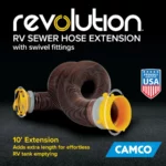 Superior RV Tank Dumping: Streamline RV tank dumping with Revolution 10′ RV Septic Hose Extension. Made with a durable & flexible RV sewer hose, this RV camping accessory makes grey & black water tank dumping straightforward & hassle-free.