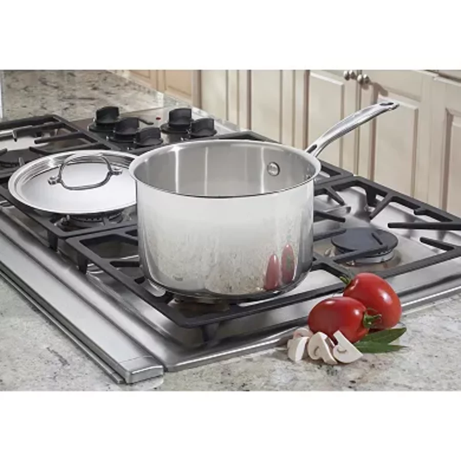 Chef’s Classic Style 4-Quart Stainless Steel Saucepan with Lid – Mirror Finish, Encapsulated Base for Even Heating & Stay-Cool Handle – Versatile Kitchen Cookware