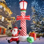 𝐄𝐲𝐞-𝐜𝐚𝐭𝐜𝐡𝐢𝐧𝐠 𝐈𝐧𝐟𝐥𝐚𝐭𝐚𝐛𝐥𝐞 𝐂𝐡𝐫𝐢𝐬𝐭𝐦𝐚𝐬 𝐃𝐞𝐜𝐨𝐫𝐚𝐭𝐢𝐨𝐧: ZXSWONLY 8.1 FT high Christmas inflatables lighthouse decoration designed with classic Christmas elements as the main design. The lighthouse is mainly red and white, with an eye-catching Merry Christmas plaque hanging on it, and a cute Santa Claus waving his hands below and 2 exquisite gift boxes. It is the best choice for Christmas yard decoration.